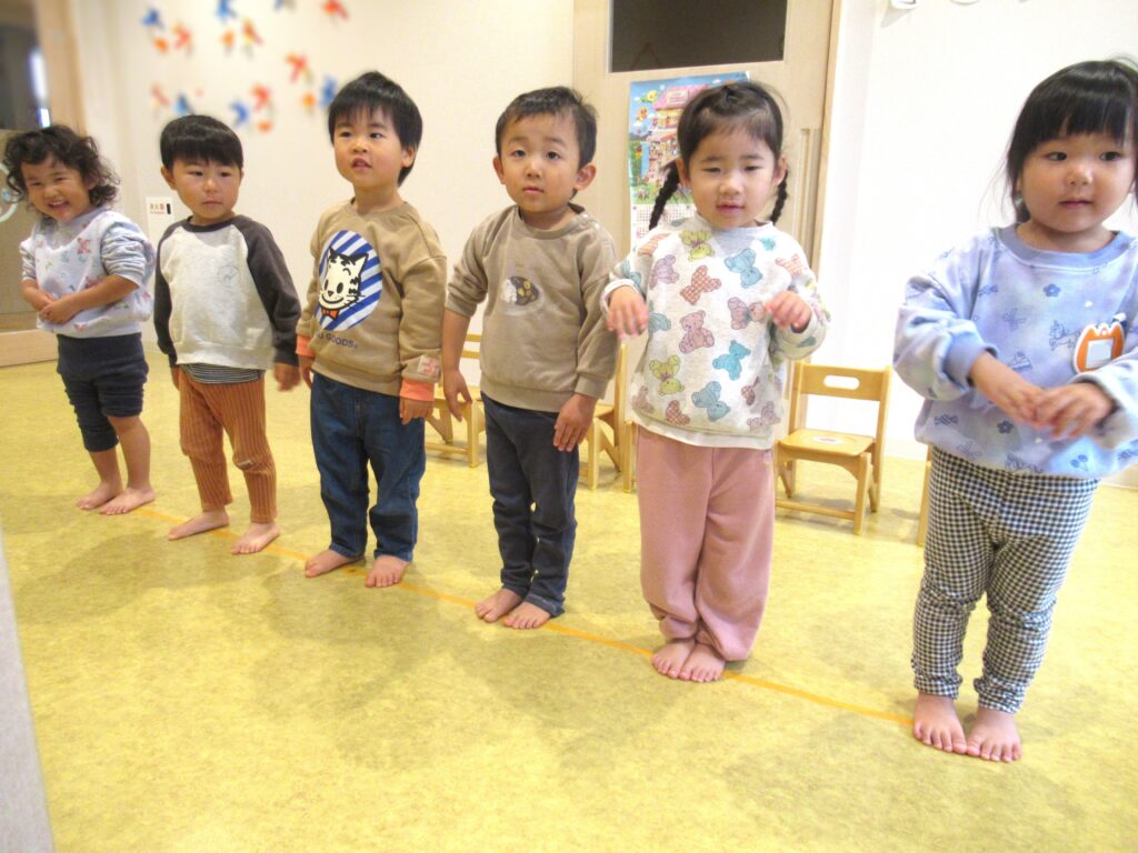 言葉が少しずつ増え、先生やお友だちの真似をして遊ぶ姿が見られます♪発表会の練習では、可愛い衣装を着てステージの上で発表することができるようになってきたいちご組さんです🍓