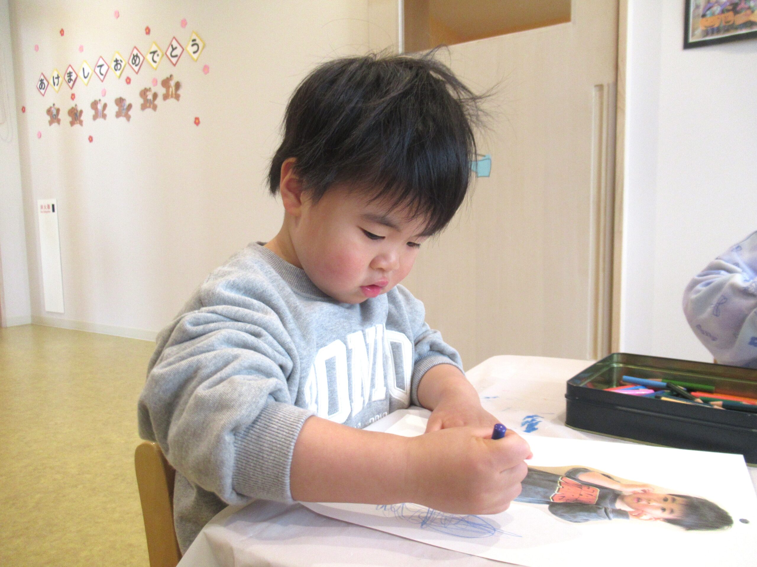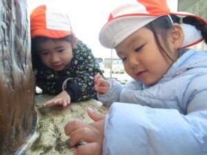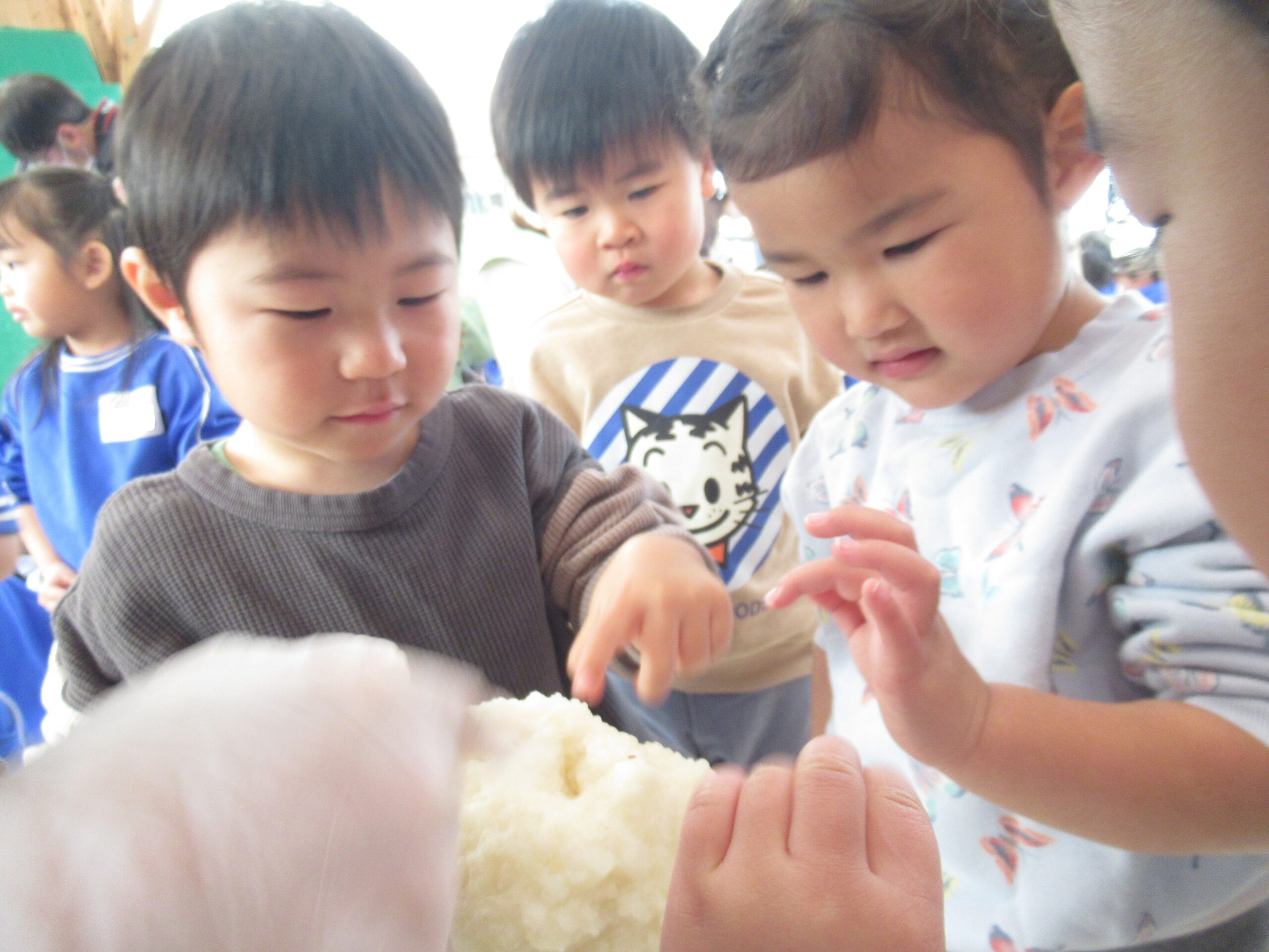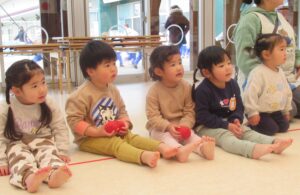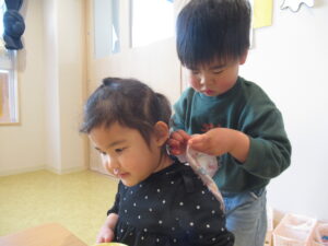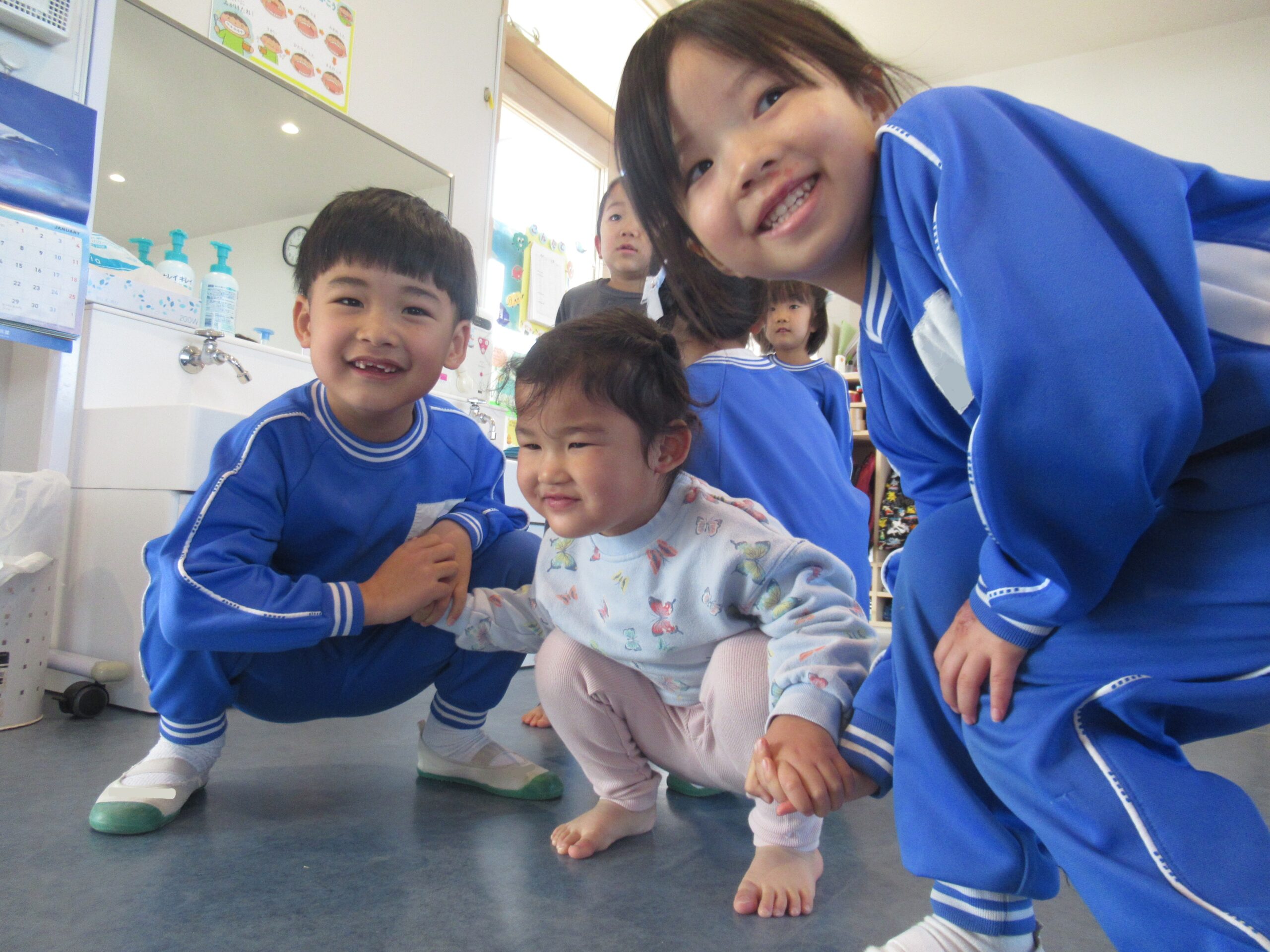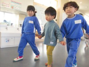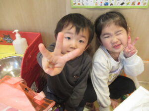 2歳児クラス 2026.1.30 令和7年度 1月の様子「みかん組」 進級を意識して、自分のことは自分で行ったり、お当番活動に取り組んだり、様々なことを頑張っているみかん組さん🍊3歳以上児さんとの交流では、少し緊張しながらもお兄さんお姉さんと過ごす楽しさを感じているようでした♪