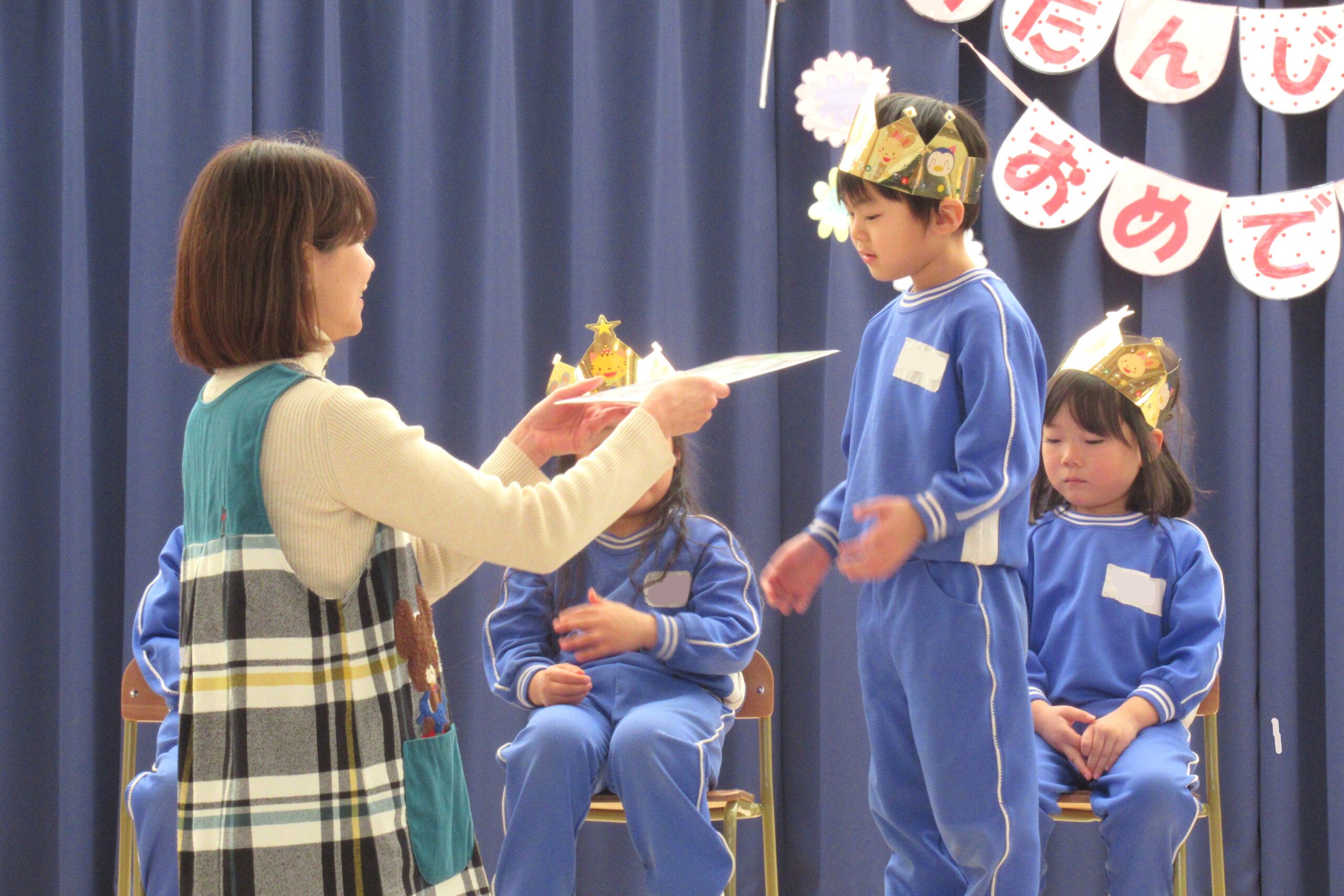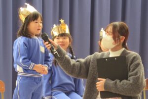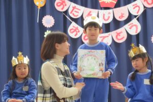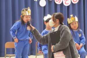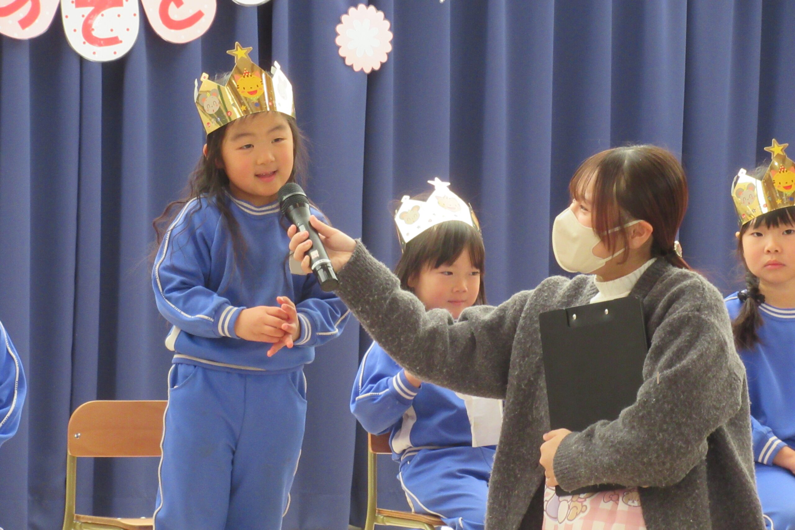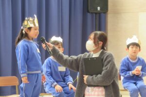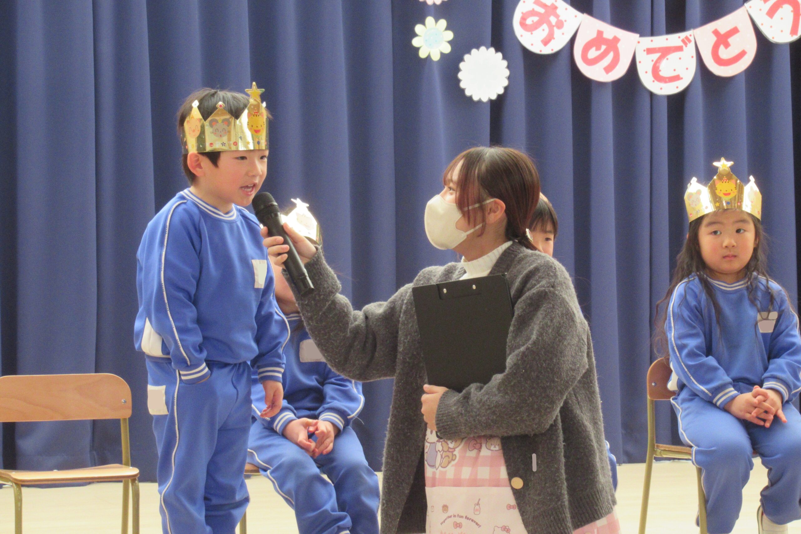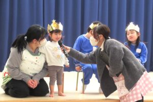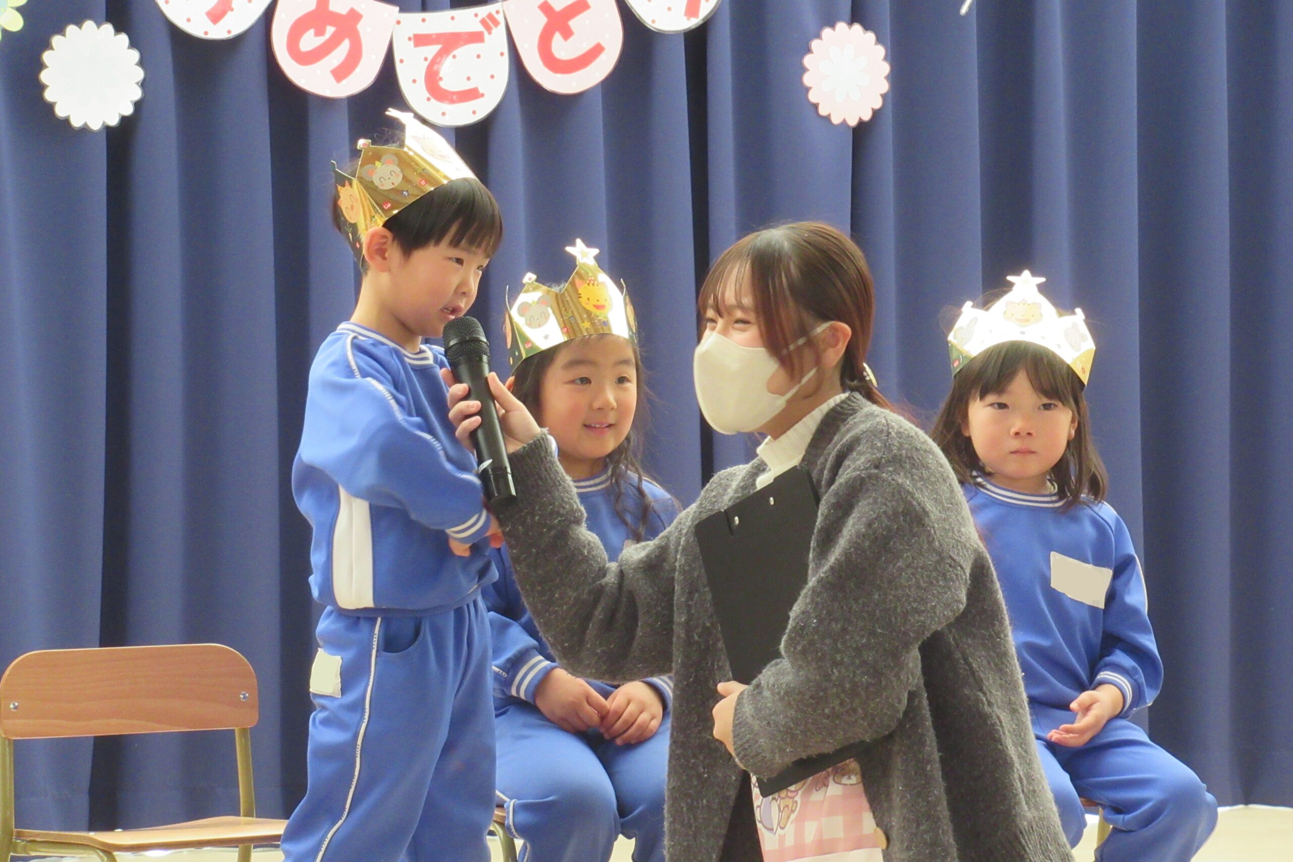 全クラス 2026.1.28 令和7年度 1月の様子「誕生会」 1月28日(水)は、1月生まれの誕生会が行われました!前々回、欠席したお友だちも参加し、11名の園児がステージにあがりました。以上児さんも未満児さんもしっかり自己紹介や質問に答えることができ、とても立派でした☆