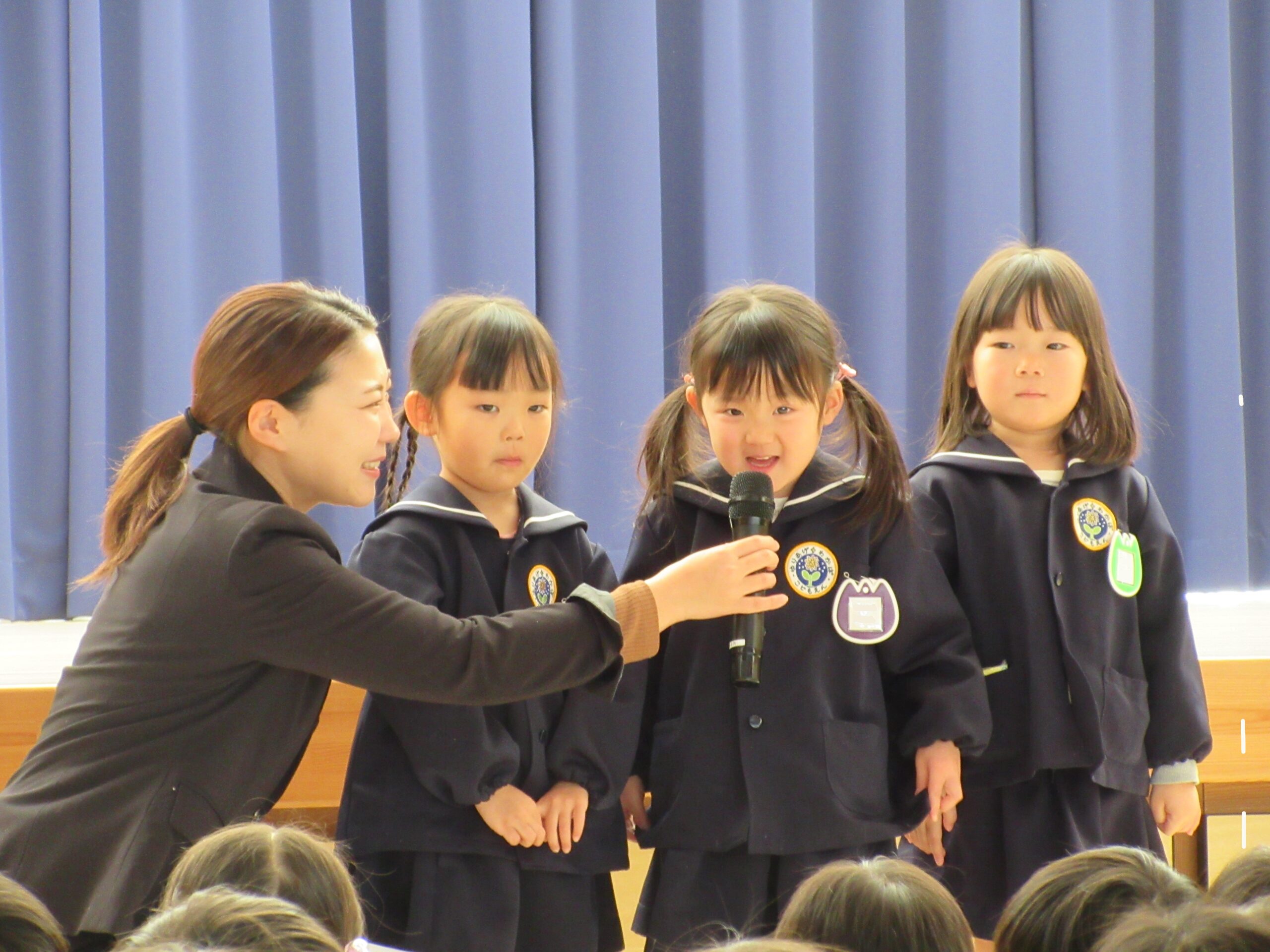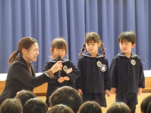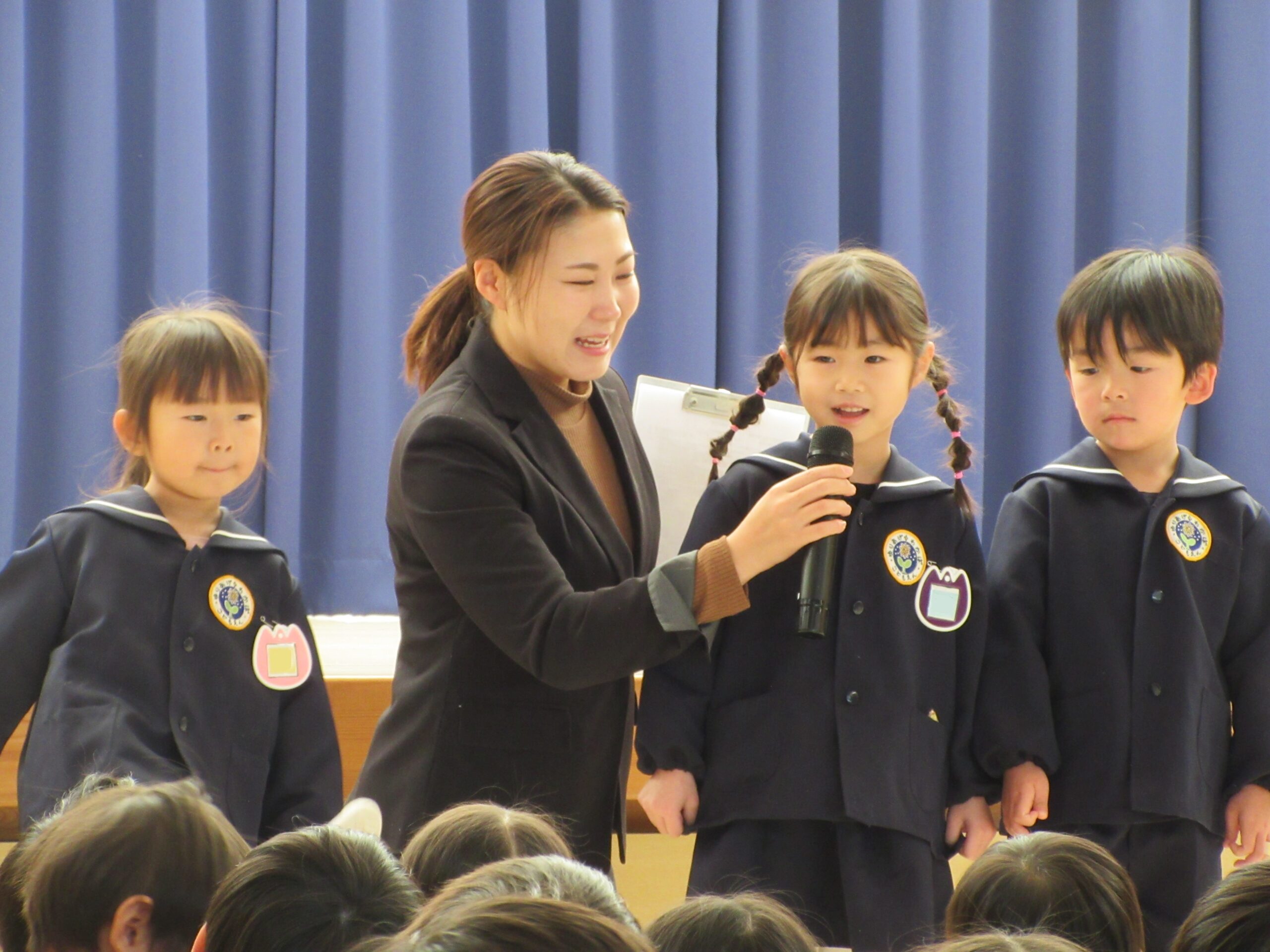 以上児クラス 2026.1.14 令和7年度 1月の行事「3学期始業式」 令和8年1月9日(金)は、久しぶりに全園児が揃い、3学期始業式が行われました。各学年代表のこどもたちが、冬休みの思い出や3学期に頑張りたいことを発表しました!途中入園のお友だちも元気に自己紹介ができました♪