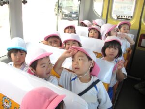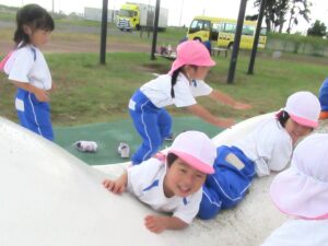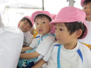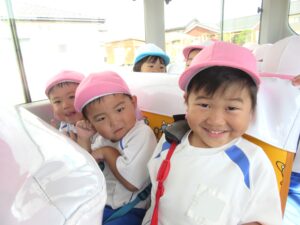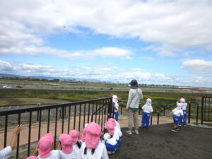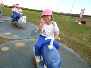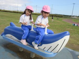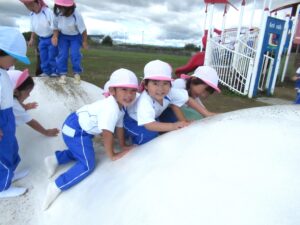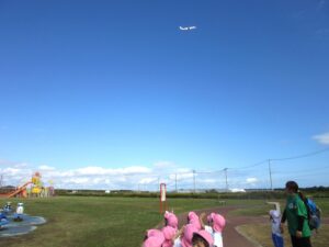 年少クラス 2025.10.21 令和7年度 10月の様子「年少園外保育」 10月17日(金)は、北釜防災公園へ園外保育に行ってきました!お友だちや先生と園バスに乗ってお出掛けできることがとても嬉しそうでした♪大きな遊具で遊んだり、飛行機を見たり、楽しい時間を過ごしてきました!