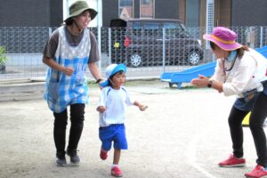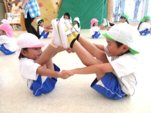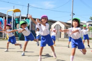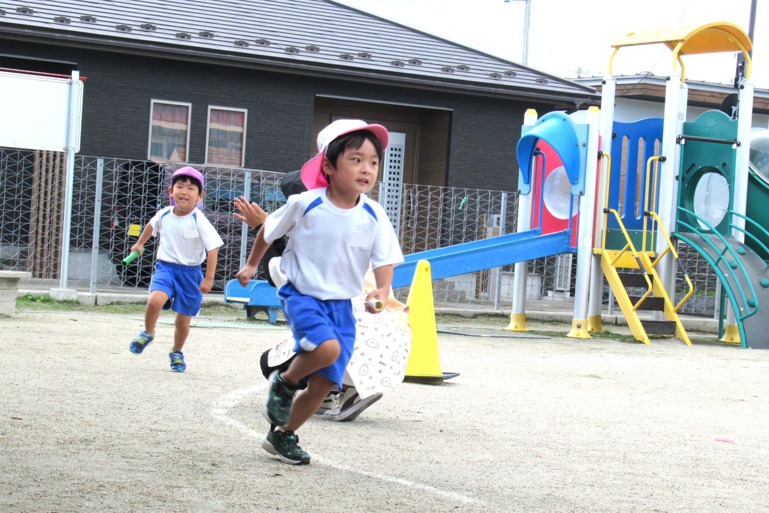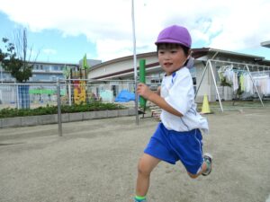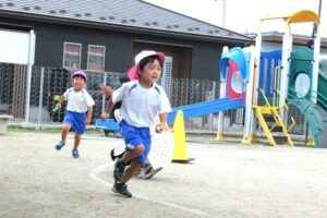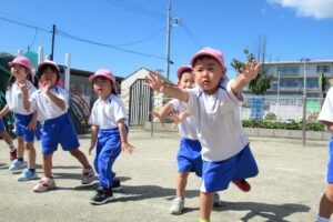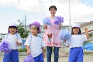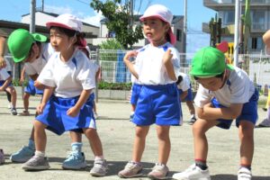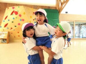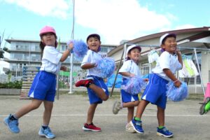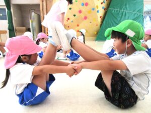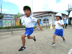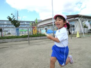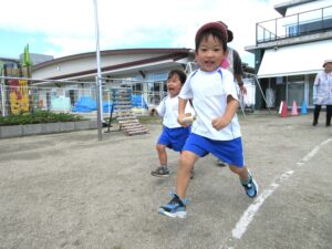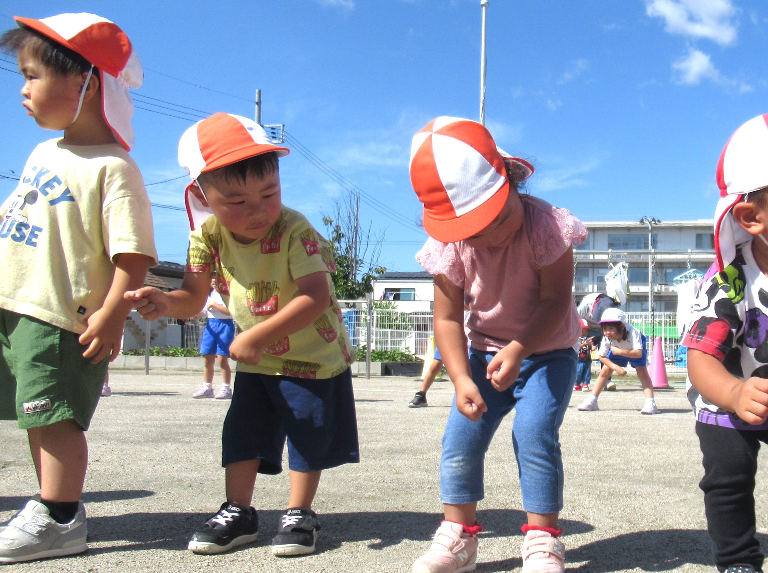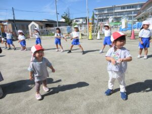 全クラス 2025.10.3 令和7年度 10月の様子「運動会ごっこ」 10月2日(木)は、全園児で運動会ごっこを楽しみました♪お遊戯やソーラン節、学年混合リレーや組立体操、バルーンなど、他学年の競技を一緒に行うことでより楽しさが増したようです!!
