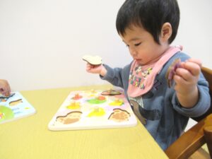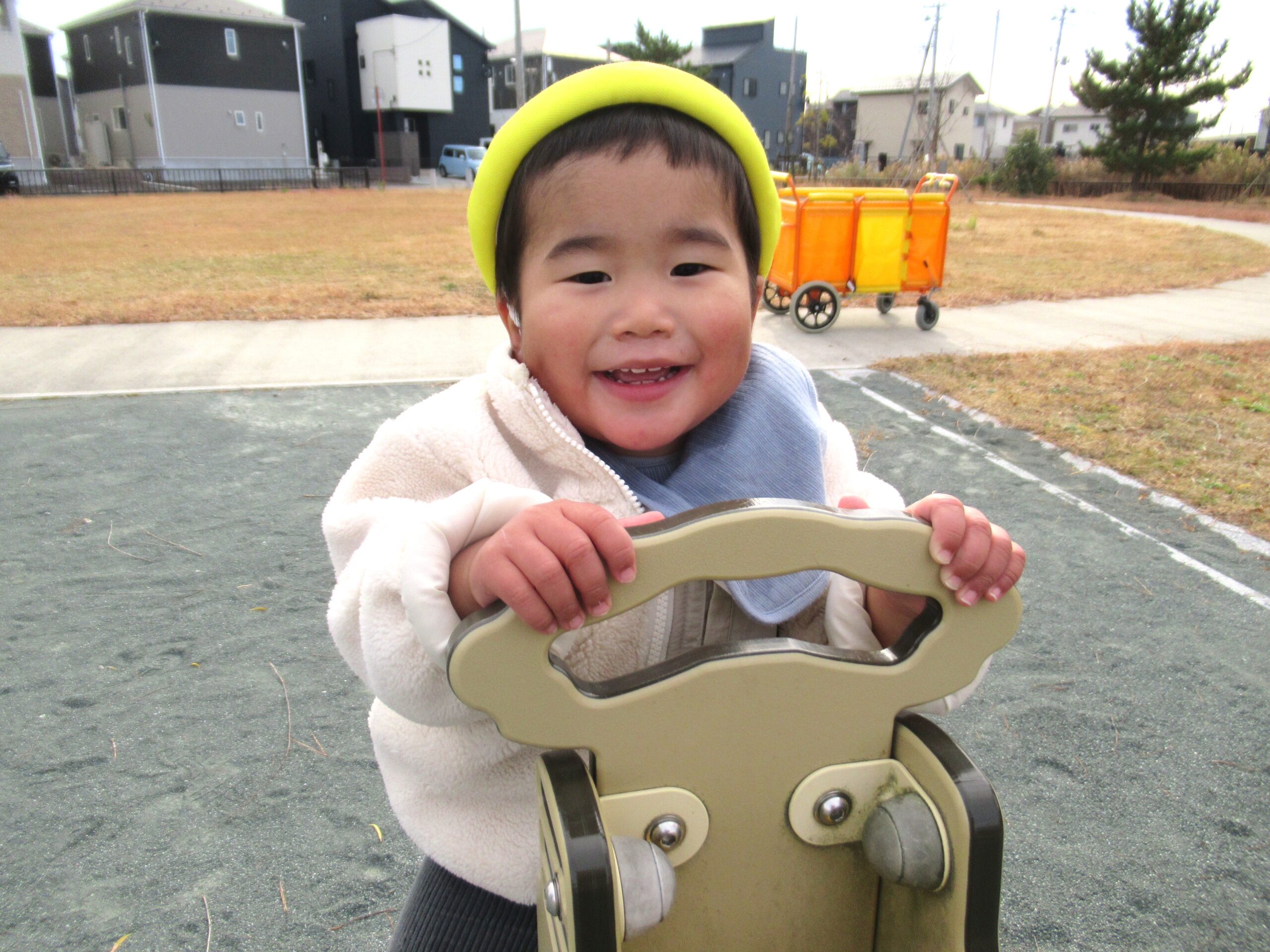 0歳児クラス 2025.12.26 令和7年度 12月の様子「さくらんぼ組」 先生たちの話を理解し、うなずいたり、首をふったり、自分の思いを表現できるようになったさくらんぼ組さん🍒また、寒さに負けず外遊びを楽しんだり、指先を上手に使ってパズルをはめこんだりできるようになりました♪