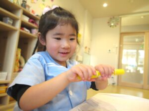 2歳児クラス 2026.2.27 令和7年度 2月の様子「みかん組」 進級に向けてお昼寝を短くしたり、お当番活動を頑張ったり、年少組になることをとても楽しみにしているみかん組さん🍊お友だちと一緒に体を動かしたり、ごっこ遊びで役になりきったり、制作に集中して取り組んだり、様々な表情を見せてくれます♪