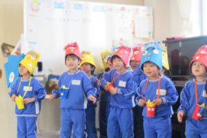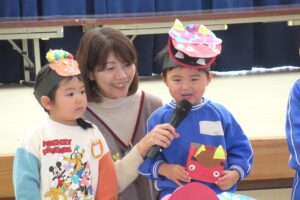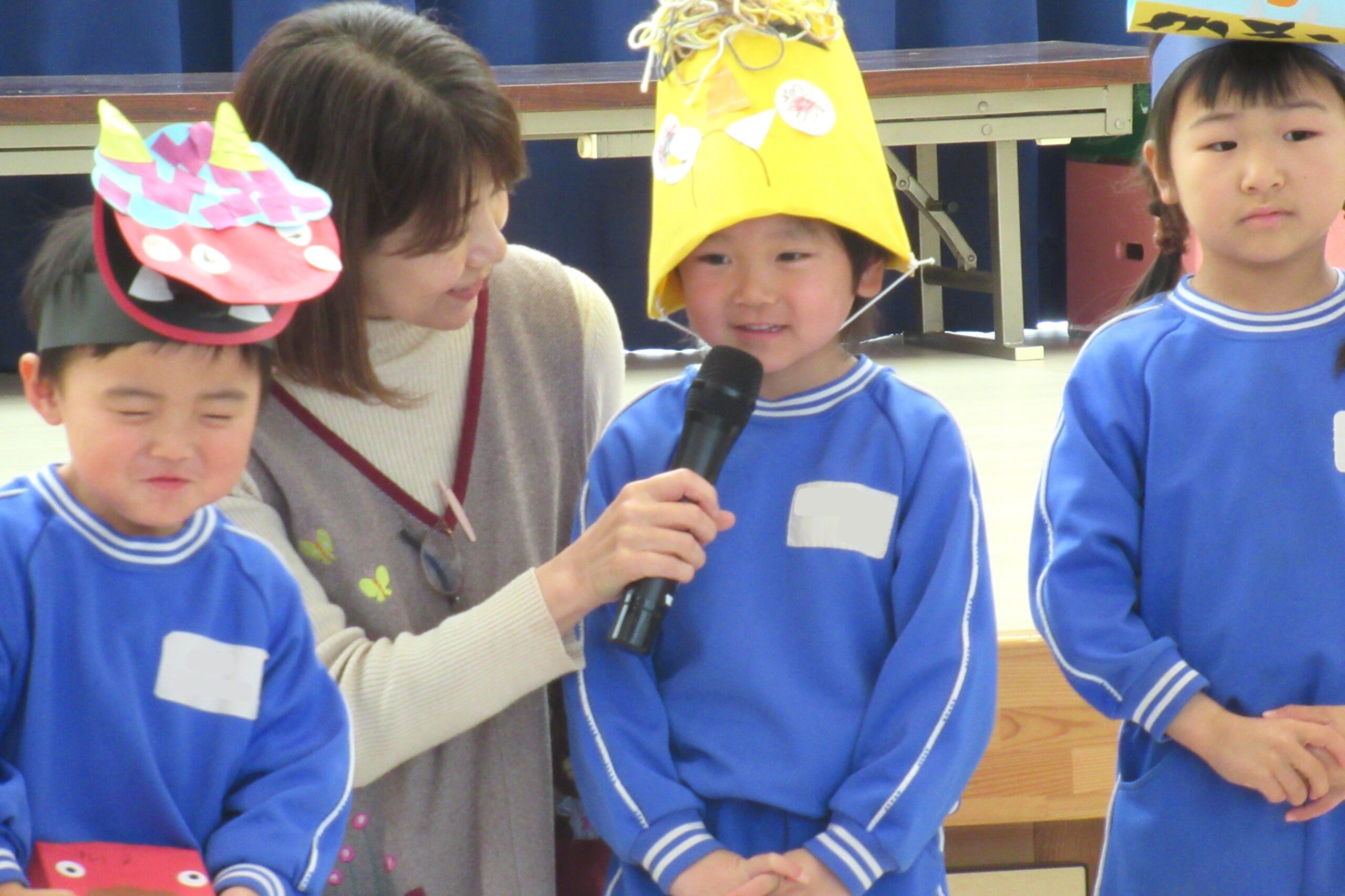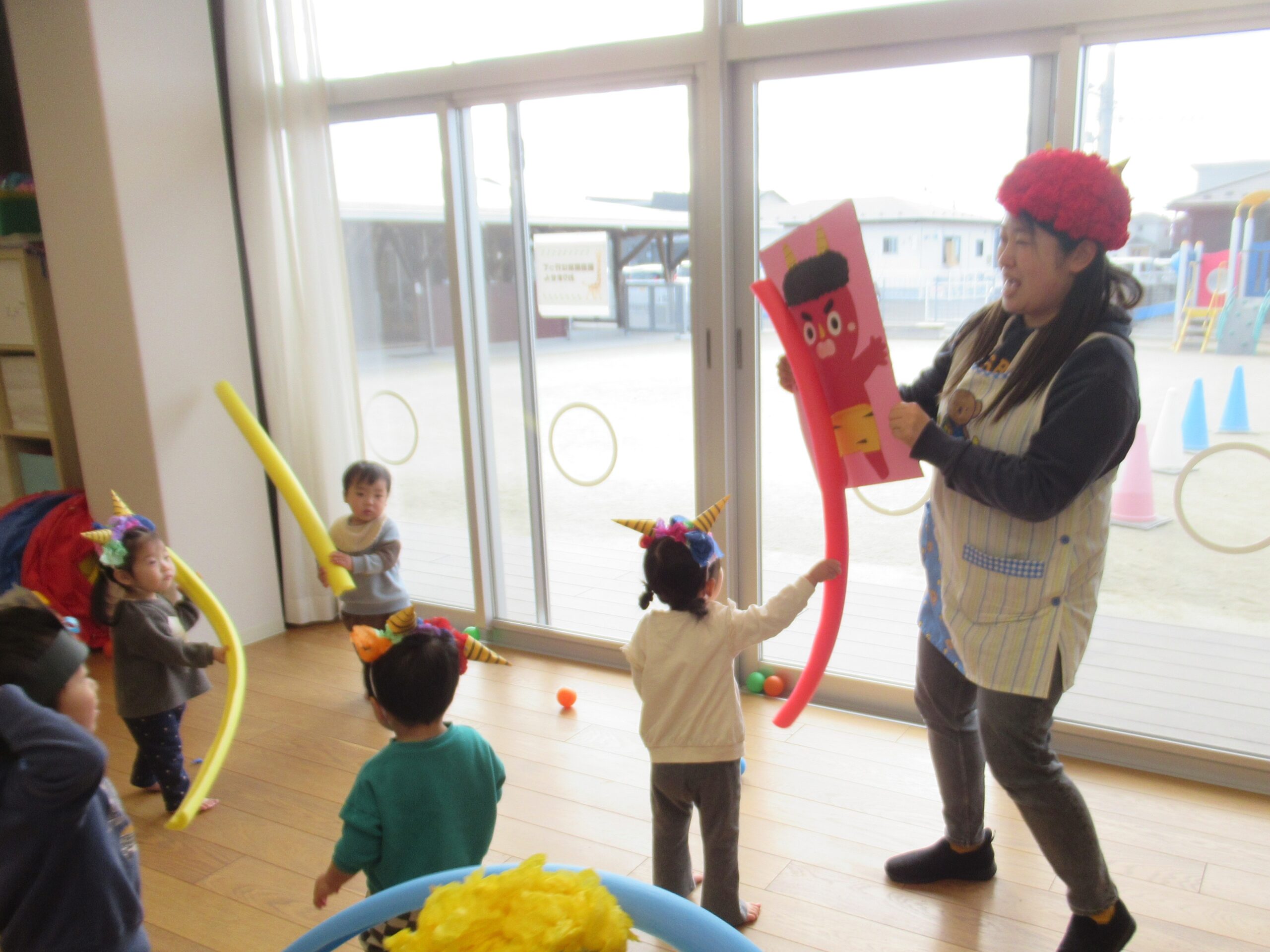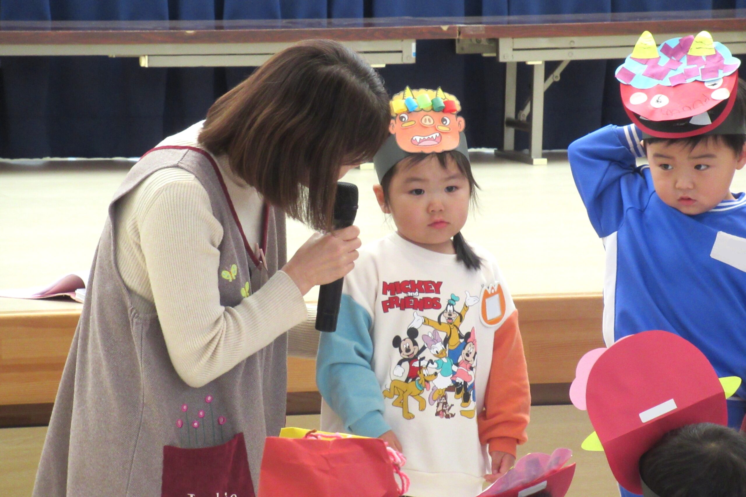 2月3日(火)は、豆まき会が行われました。ホールでは、代表のこどもたちが自分で作った鬼について発表をしたり、先生たちの劇を見たり、豆まきの歌を歌ったり、節分行事に触れることができました。その後、クラスで豆まきを行い、自分の中にいる追い出したい鬼を退治しました!「鬼は外、福は内」の掛け声が園内に響きました♪