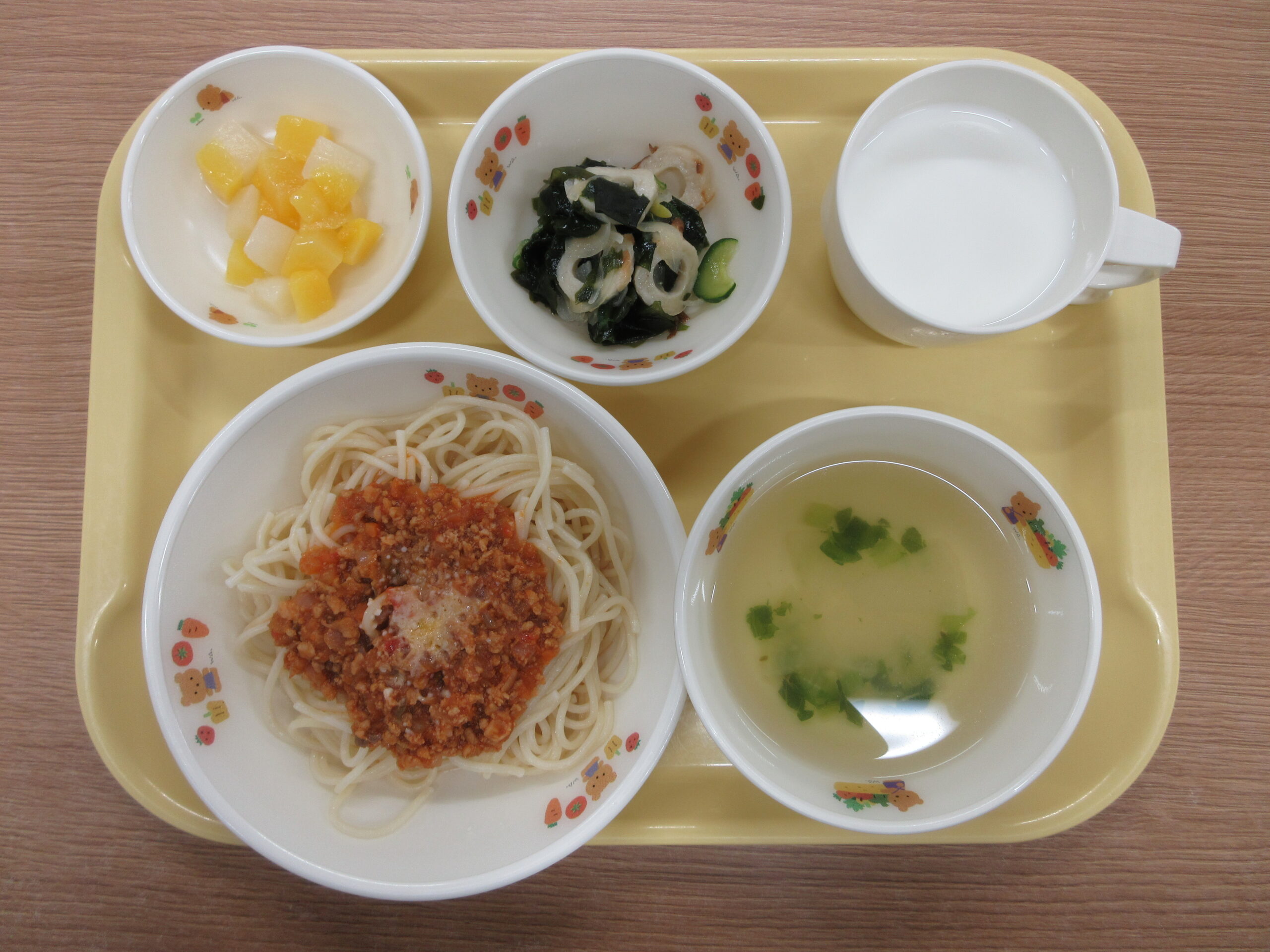 2月26日(木)の給食のメニューはみんな大好きミートスパゲティでした🍝