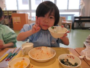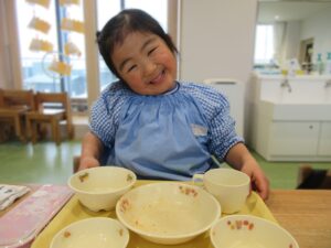 完食して空っぽになった食器を誇らしげに見せてくれる年長さんたちに頼もしさを感じました✨