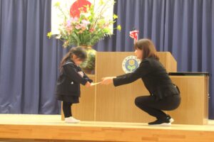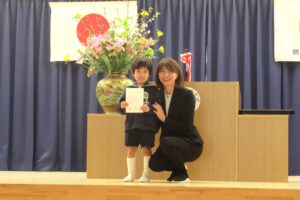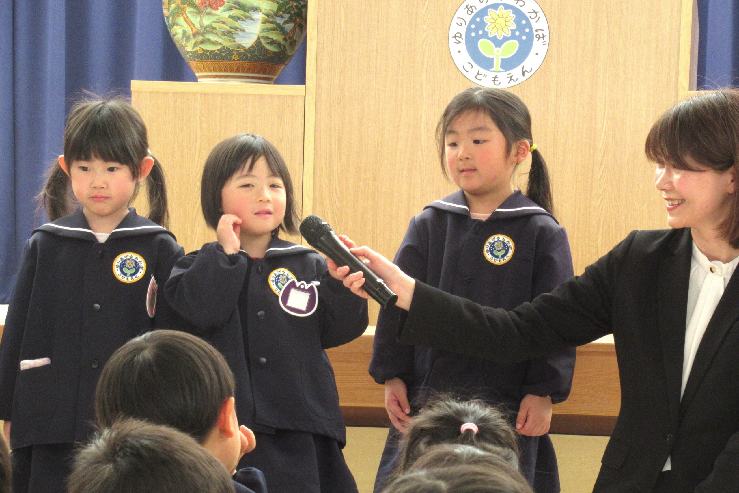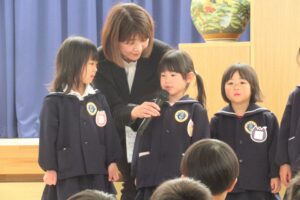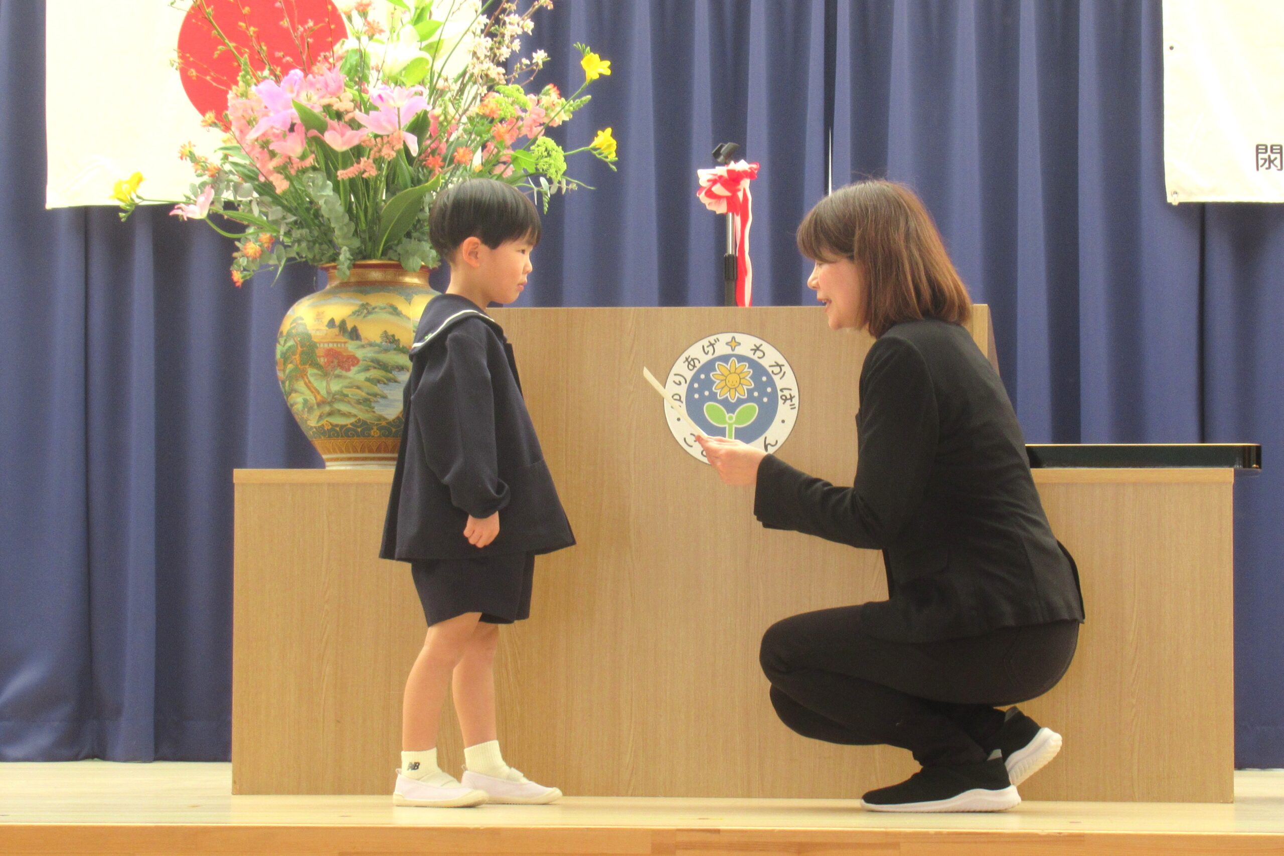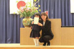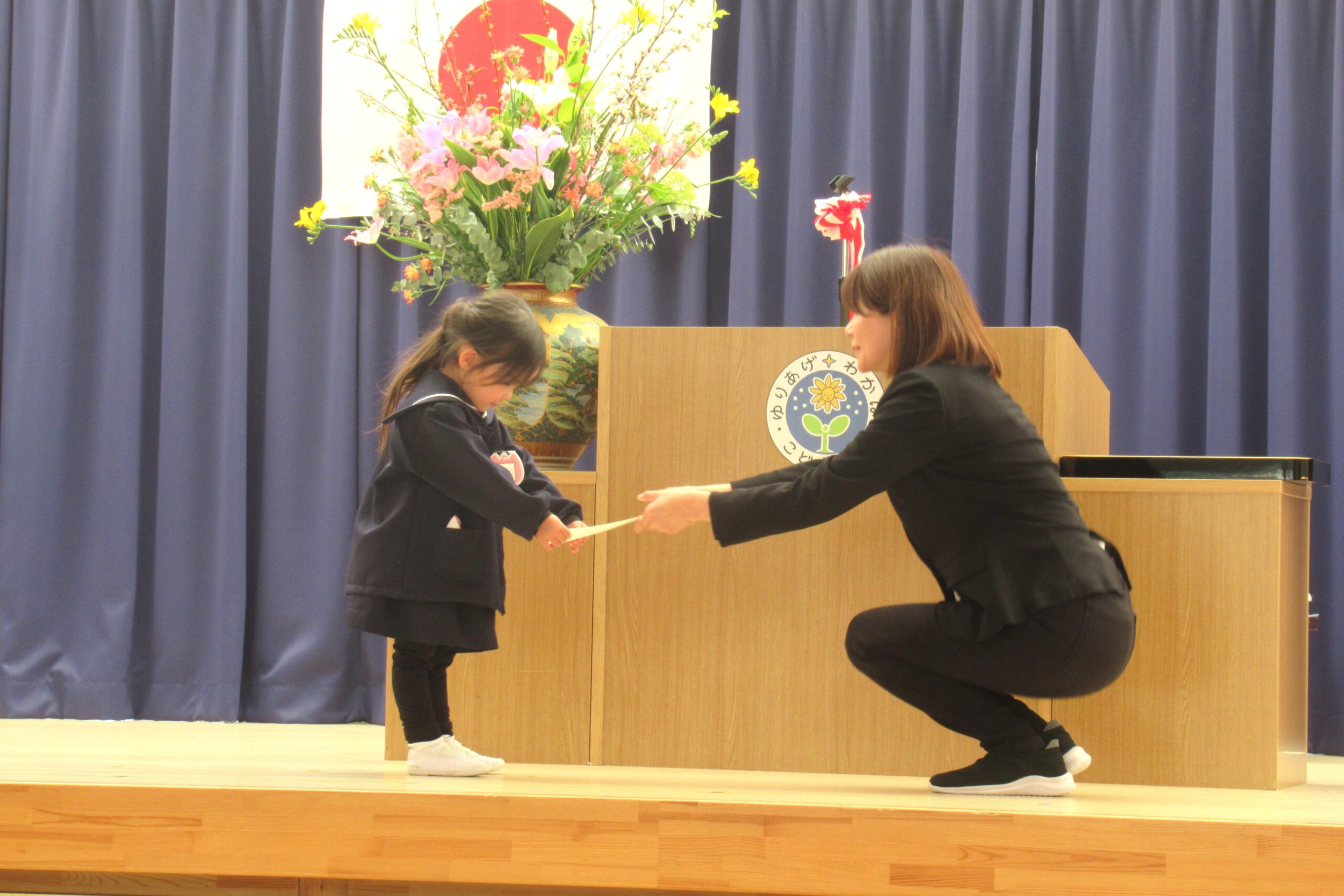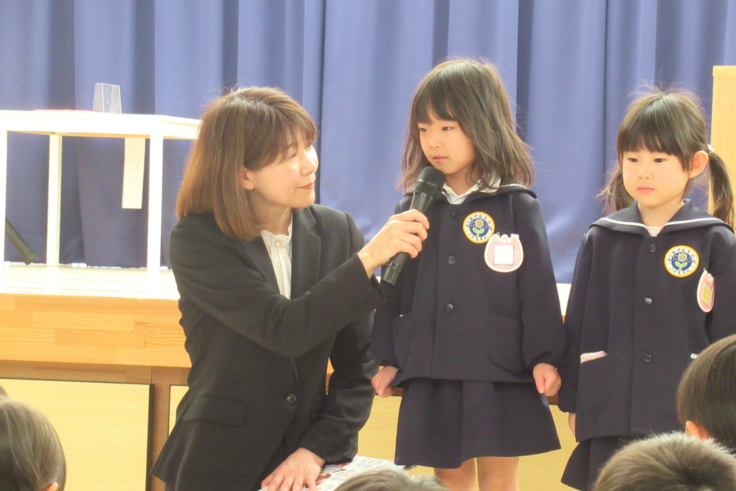 以上児クラス 2026.3.31 令和7年度 3月の様子「修了式」 3月19日(木)は、修了式が行われました。代表の子どもたちが修了証書を立派にもらうことができました。また、学年代表のこどもたちが3学期の楽しかった思い出をみんなの前で発表し、大きな成長を感じました。最後に、3月15日(日)に亡くなった園長先生へ届くようみんなで感謝の言葉を言い、「ありがとうの花」「園歌」を歌いました。きっと演台の前で見てくれていたと思います。 園長先生、今までありがとうございました。