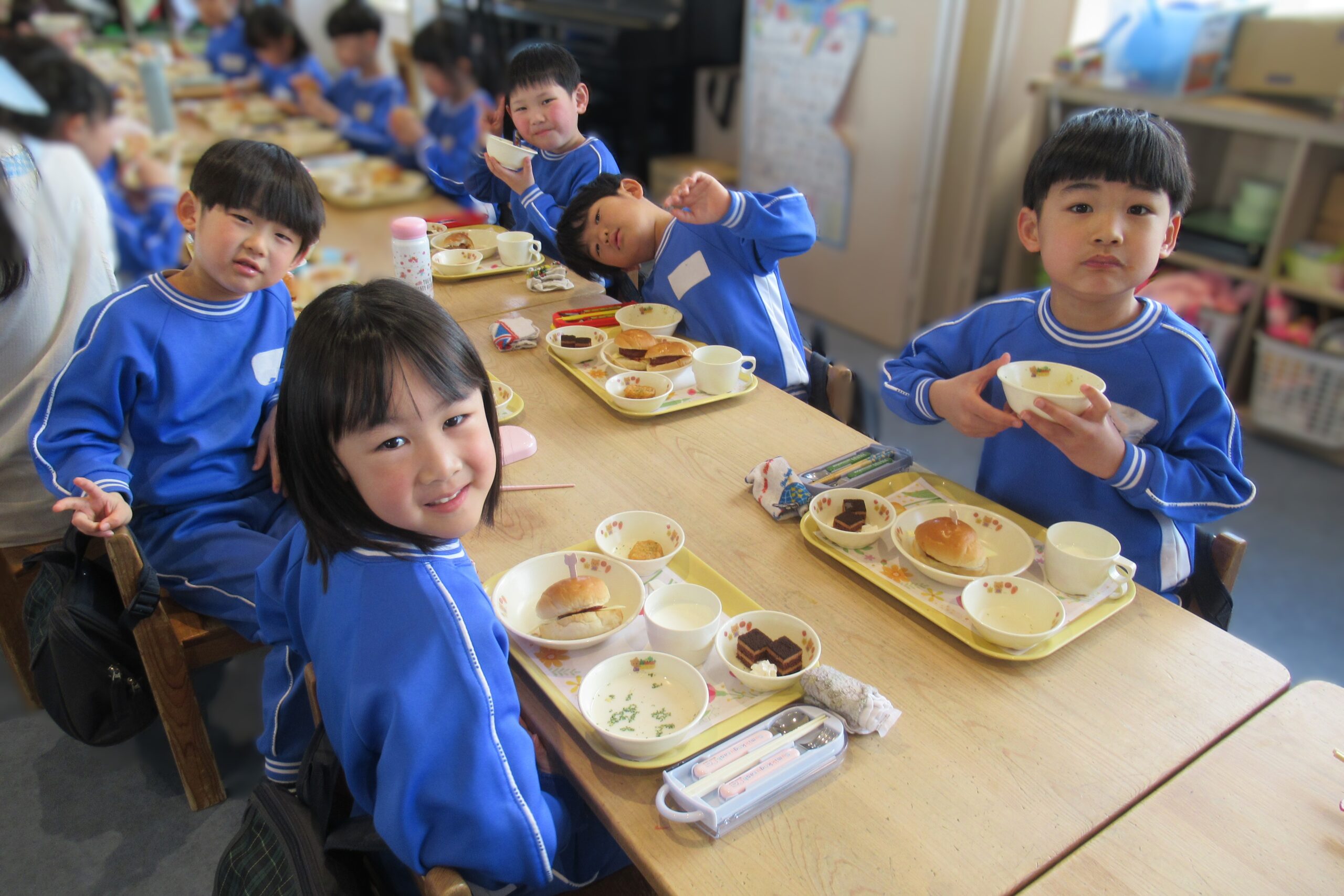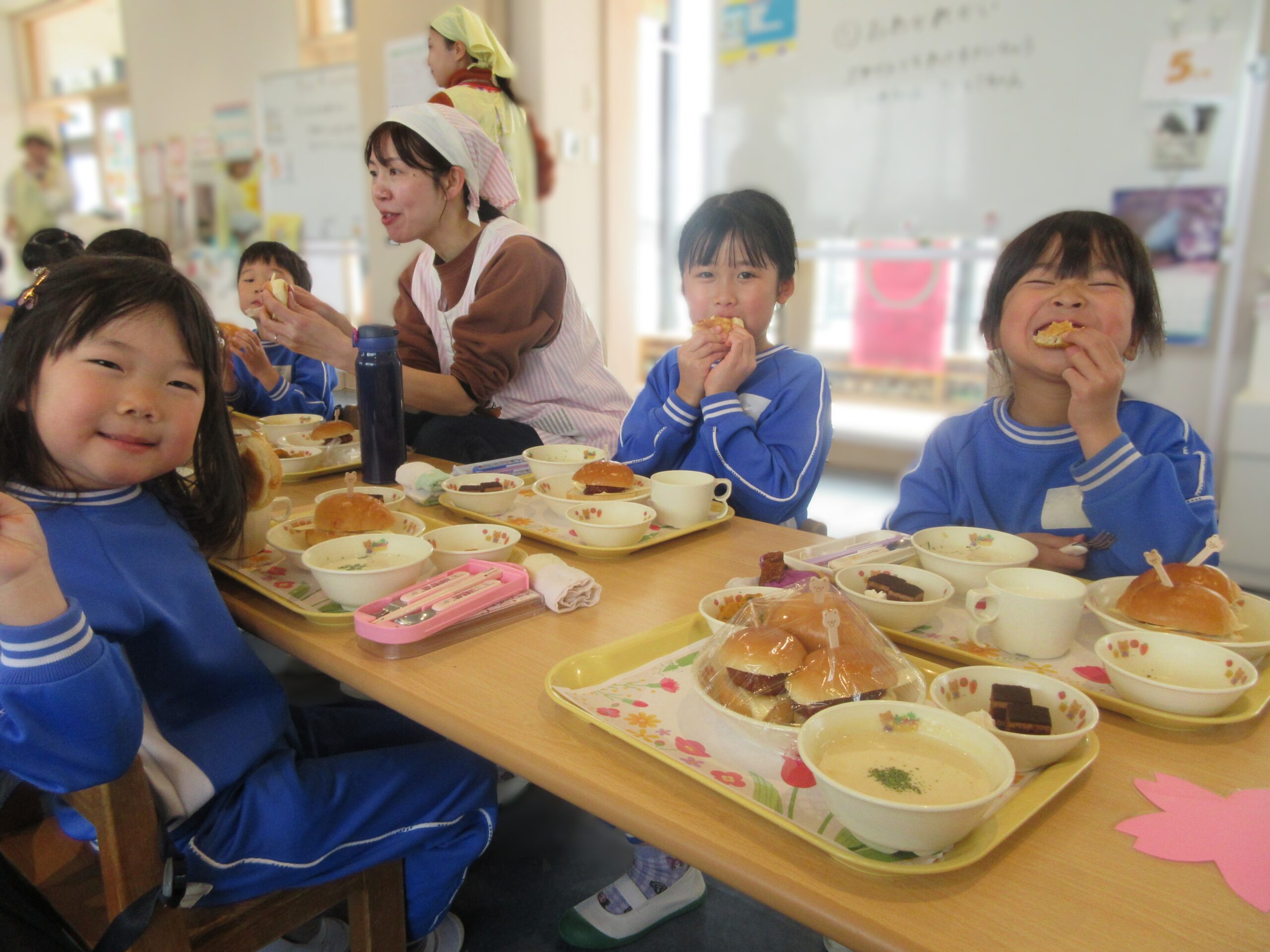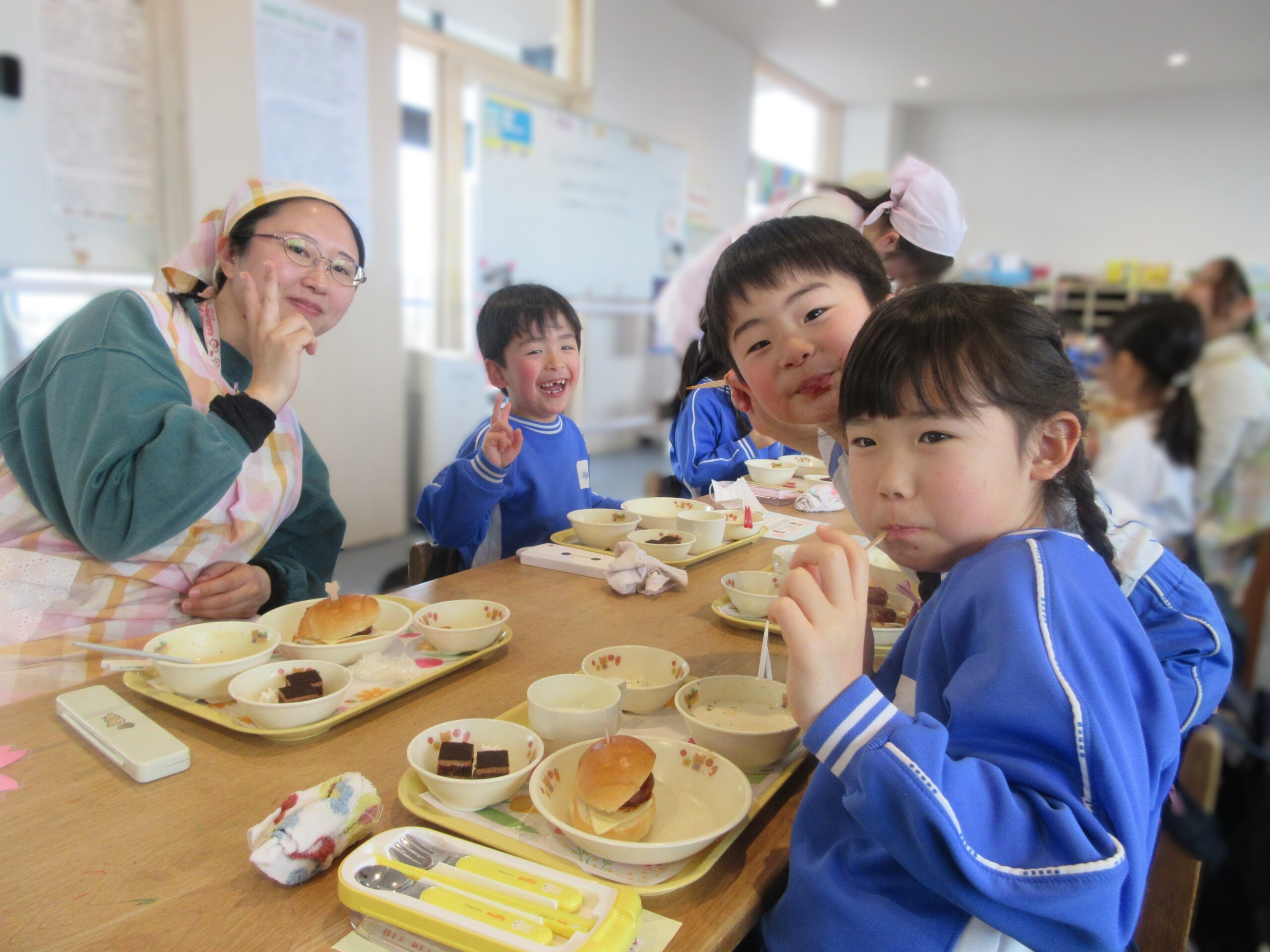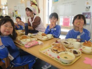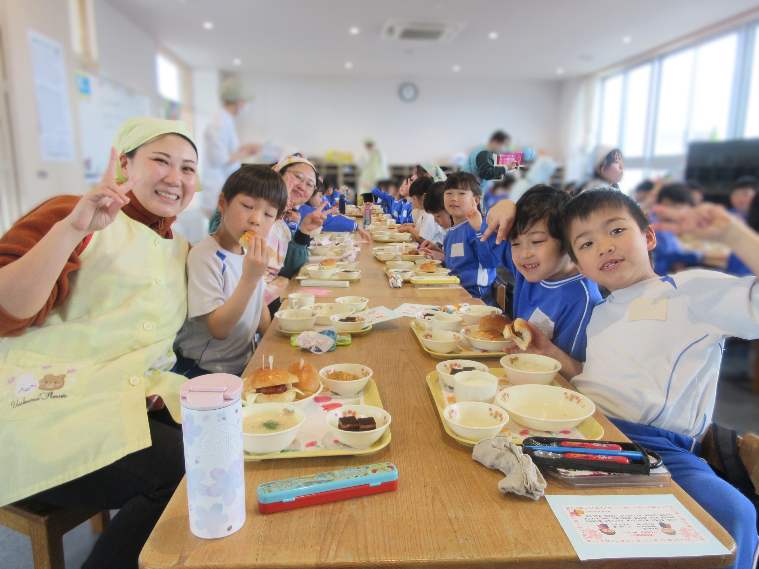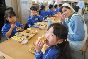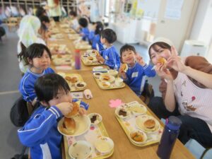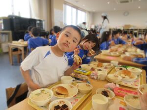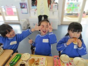 年長さんと先生たちとみんなで一緒に食べました!
