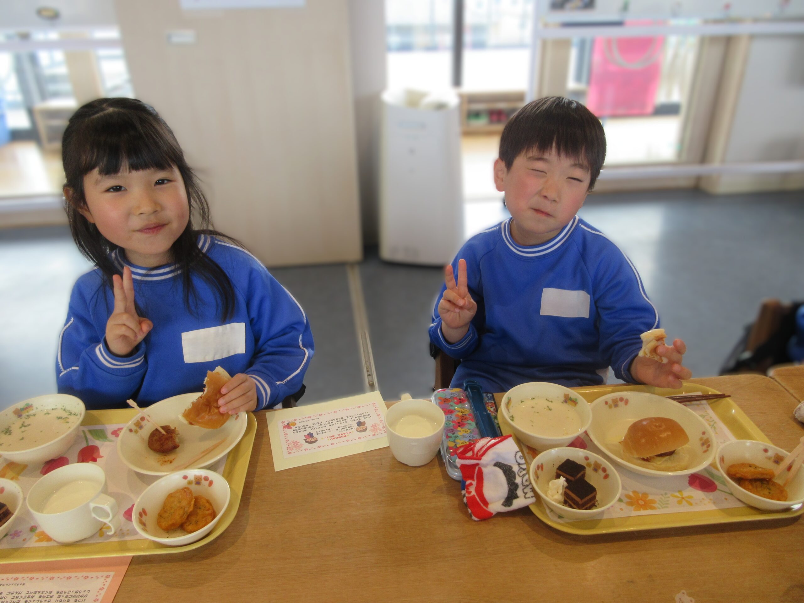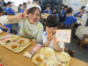 給食室の菅野さんからサプライズでお手紙をもらい喜んでいました💌