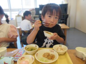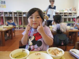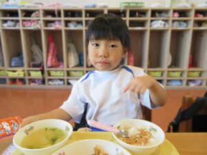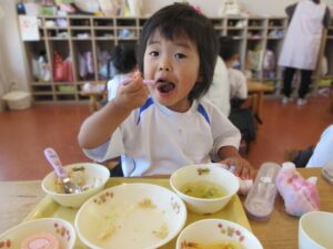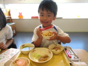 栄養たっぷりの給食をたくさん食べて、明日の運動会では今までの練習の成果を発揮しようね!