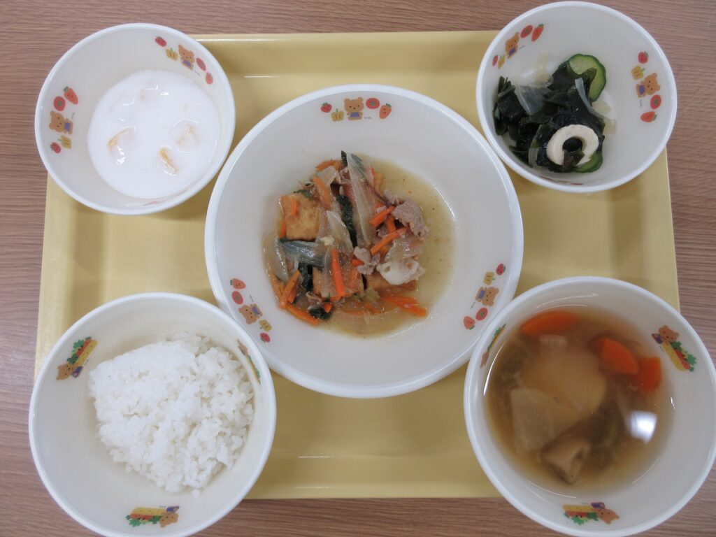 1月23日(金)の給食の献立 ・ごはん ・仙台雪菜のチャンプルー ・海藻サラダ ・はっと汁 ・ももフルーチェ ・牛乳 今日の給食は地産地消メニューでした。 チャンプルーをごはんの上にのせて食べている子もいましたよ♪ 「は […]