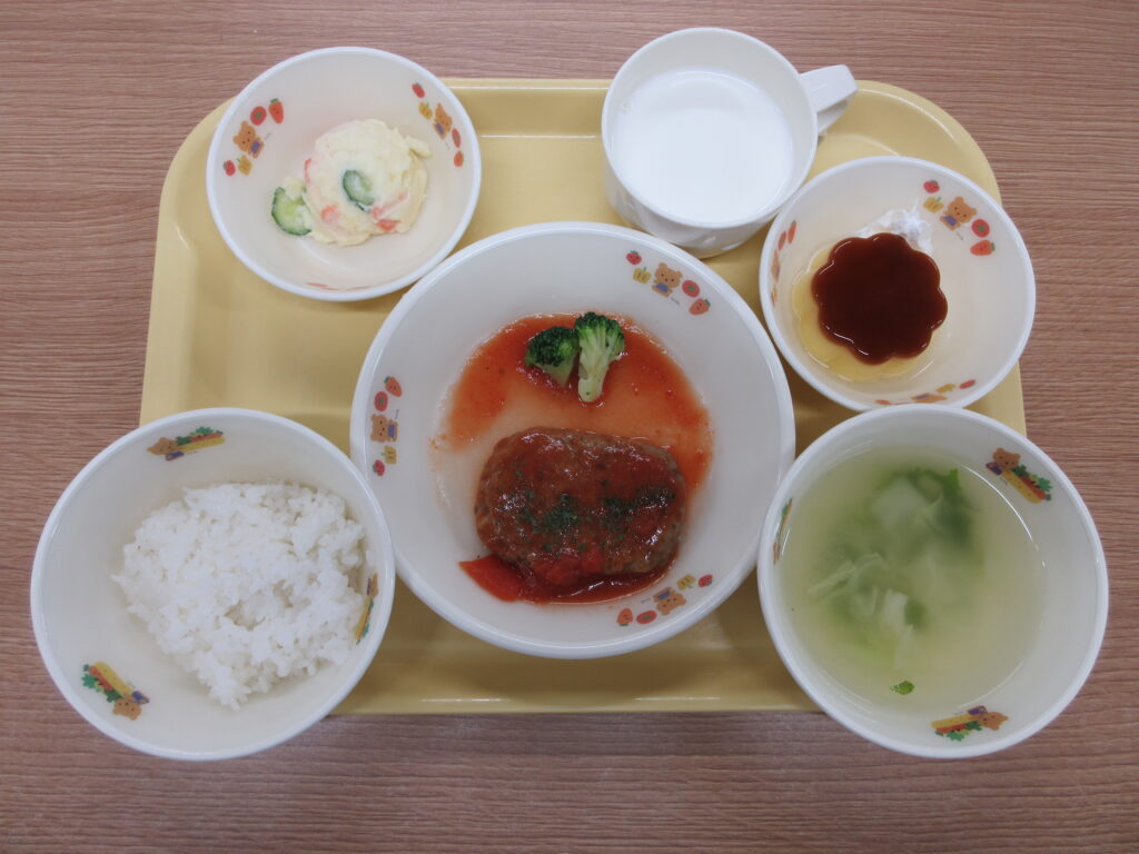 1月28日(水)の給食の献立 ・ごはん ・トマト煮込みハンバーグ ・ポテトサラダ ・コンソメスープ ・プリン ・牛乳 1月28日(水)の給食はお誕生日会メニューでした🎉 給食初登場のトマト煮込みハンバーグは […]