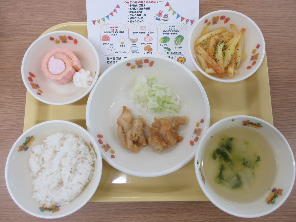 9月26日(金)の給食の献立 ・ふりかけごはん(サケ) ・鶏肉の唐揚げ ・ポテトフライ ・コンソメスープ ・いちごケーキ ・牛乳 9月26日(金)の給食は運動会応援メニューでした★☆★ 栄養たっぷりの給食を […]