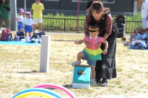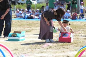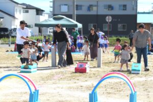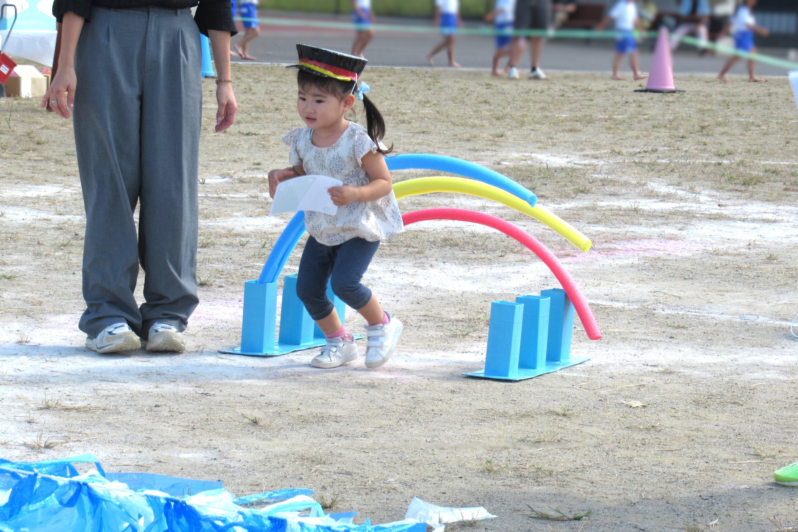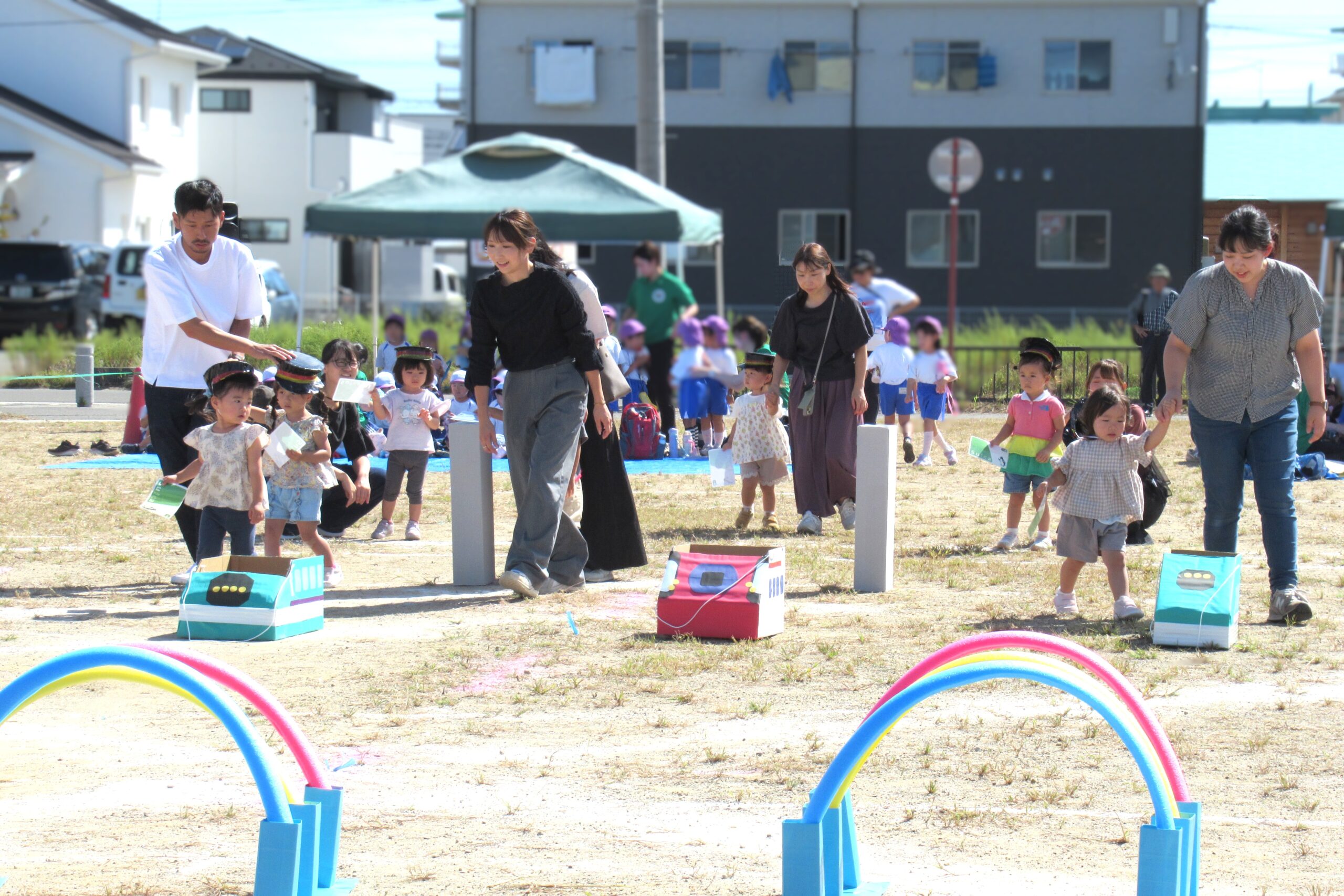 9月27日(土)は、こども園の運動会に参加しました!Suicaを使って改札を通り新幹線に乗って保護者の方にゴールまで引いてもらいました♪最後は年長組のお兄さんお姉さんにメダルをかけてもらい、とても嬉しそうでした。運動会へ遊びに来てくれてありがとうございました😊