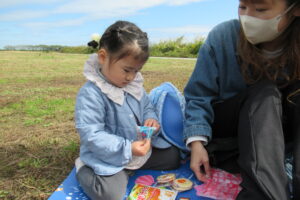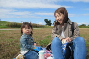 2025.10.23 令和7年度 第6回わかばクラブ 10月23日(木)は、みんなでお散歩に出かけました!公園では、遊具で遊んだり、ドングリや松ぼっくりを拾ったりしました。その後は土手の下でおやつタイム♪大好きなお菓子を食べてにこにこ笑顔でした😊