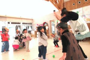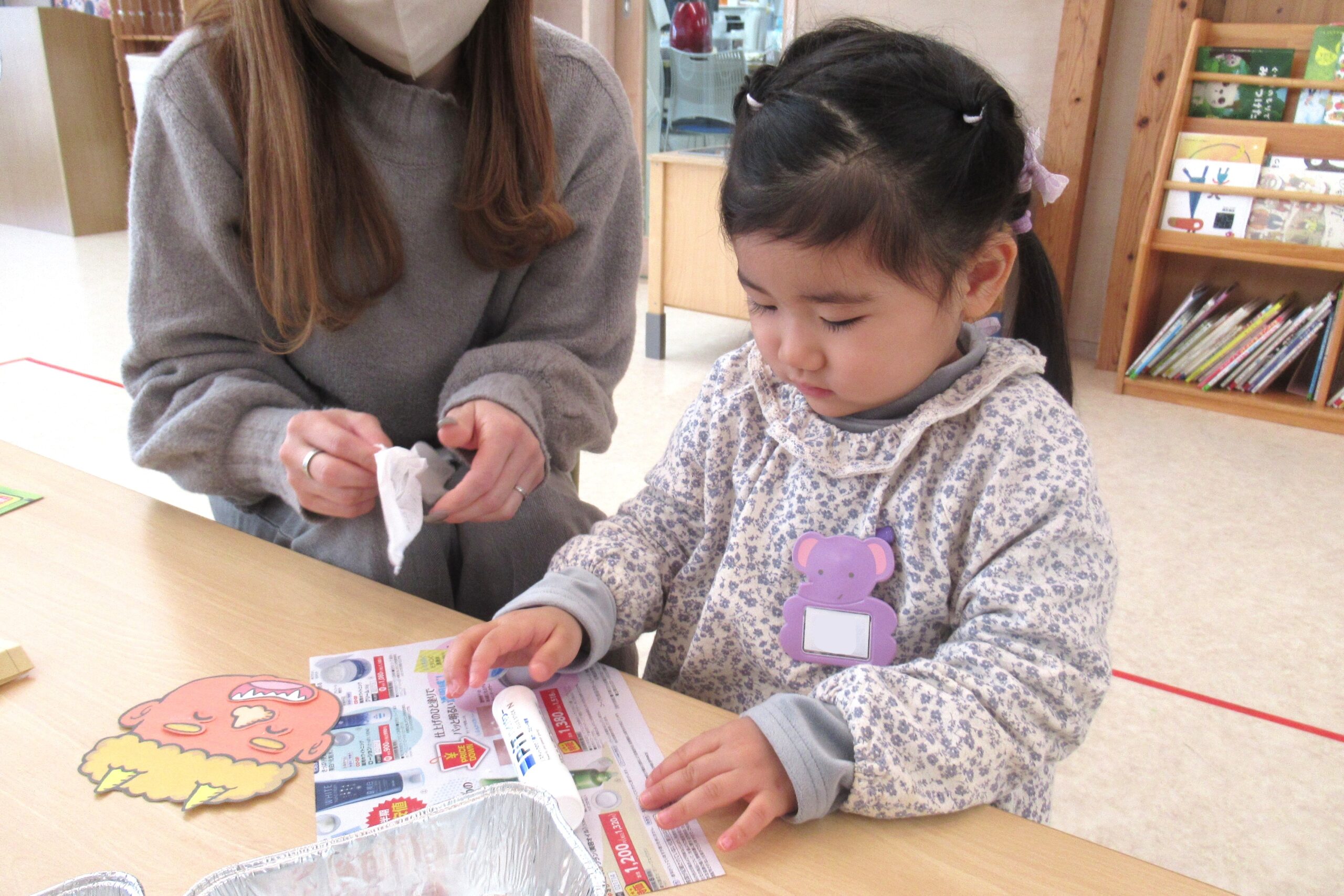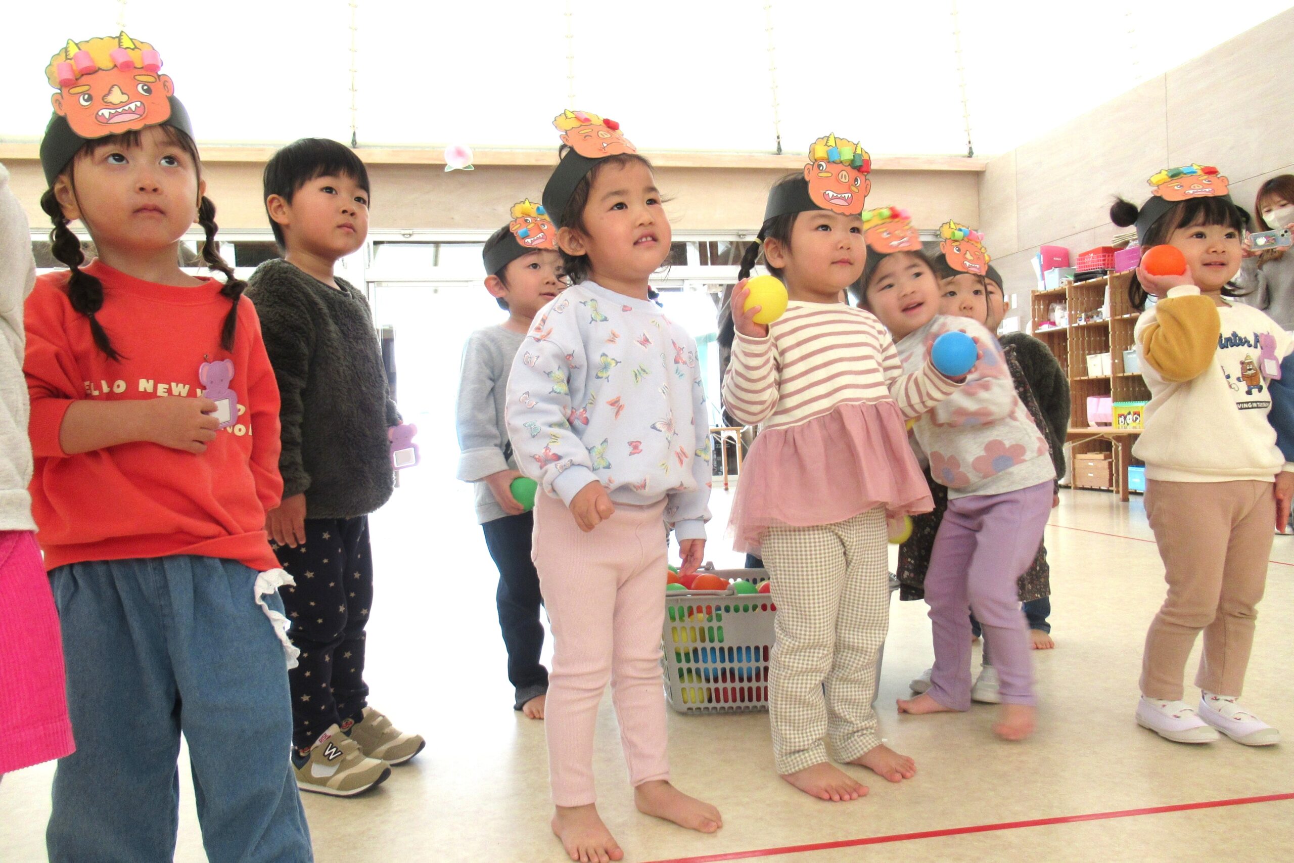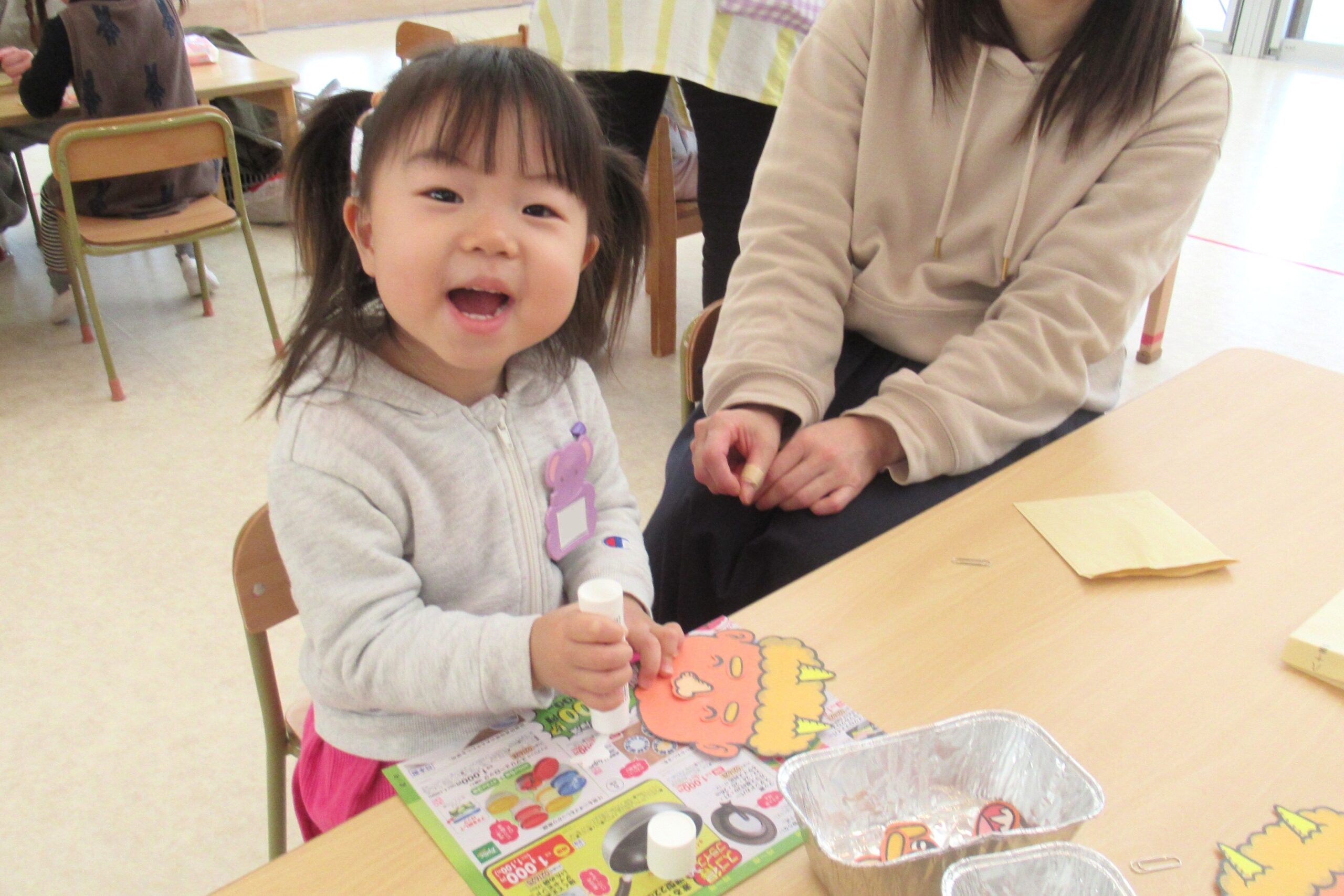 1月27日(火)は、第9回目のわかばクラブが開催されました!今回は、2歳児のみかん組さんとの交流会でした🍊一緒に鬼のお面制作したり、豆まきごっこをしたり、ひよこ体操をしたり、楽しく過ごすことができました😊
